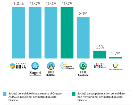 La sede principale del Gruppo è ad Alessandria. Il Gruppo è strutturato sul modello di una holding industriale, con la capofila AMAG SpA e 7 società partecipate: Sogeri SpA., AMAG Reti Gas SpA, AMAG Ambiente SpA, AMAG Mobilità SpA, Telenergia Srl. Le ultime due, come già descritto, non rientrano nel perimetro di rendicontazione.